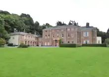 Haccombe is a hamlet, former parish and historic manor in Devon, situated 2 1/2 miles east of Newton Abbot, in the south of the county. It is possibly the smallest parish in England, and was said in 1810 to be remarkable for containing only two inhabited houses, namely the manor house known as Haccombe House and the parsonage.[1] Haccombe House is a "nondescript Georgian structure" (Pevsner), rebuilt shortly before 1795[2] by the Carew family on the site of an important mediaeval manor house.[3]