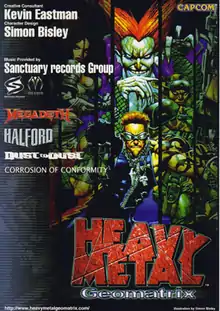 Heavy Metal: Geomatrix (ヘビーメタル ジオマトリックス, Hebī Metaru Jiomatorikkusu) is a fully 3D arena fighting video game released in 2001 by both Sega and Capcom for the Sega NAOMI and Dreamcast, based upon the Heavy Metal license.