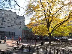 The West 47th Street Block Association and other residents collaborated to keep the park safe in the 1980s. They did so by holding gatherings, getting lights installed on adjoining buildings, and advocating for a fence, which was built in the late 1980s.[1] In 2005, the park was reconstructed with $1.2 million allocated by Council member for the 3rd District, Christine Quinn.[2]