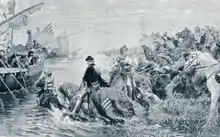 In 1396, Hermann bravely fought at the side of King Sigismund of Hungary during the battle against the Ottoman Turks in the Bulgarian town of Nicopolis.[2] The Christian coalition was soundly defeated. Hermann saved Sigismund's life.[3] The two escaped the battlefield on the same fishing boat and underwent a long journey back to Hungary together.[2] Sigismund rewarded Hermann by assigning to him the district of Varaždin in 1397,[1] followed in 1399[1] by various other districts in Zagorje along the border of the Kingdom of Croatia and the Holy Roman Empire.[2] These grants were hereditary and made the Celje counts the greatest landowners in Slavonia; from then on, they styled themselves "counts of Celje and Zagorje".[1]