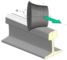 HSG is based on the principle of circumferential grinding. Cylindrical grinding stones are pulled over the rail at an angle, inducing rotation as well as an axial grinding motion. The grinding stones are mounted on grinding units hauled by a carrier vehicle.