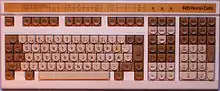 Development of the office suit Notis started in January 1978 out of the existing expertise in typesetting and a desire to sell computers to the public sector.[79] The word processing section was based on a program which had been developed by an employee while working at CERN and this was combined with systems for incorporating tables with figures such as budgets. The system also features search and e-mail. At first the QED text editor was used,[80] but this was later replaced with TED, developed by Kvam Data. Notis was installed on all systems from 1980 and quickly became popular among customers.[81] Because ND's screens were not optimized for text processing, from 1982 Tandberg Data delivered tailor-made keyboards and keyboards. Because text processing required high performance and extra peripherals, ND made high margins on the implementation.[82] ND bought the typesetting system Comtec in 1981, which was combined with Nortext and resulted in large increases in the sale of the systems.[83]