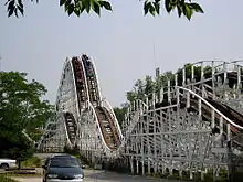 By 1919, the first underfriction roller coaster had been developed by John Miller.[10] Soon, roller coasters spread to amusement parks all around the world. Perhaps the best known historical roller coaster, The Cyclone, was opened at Coney Island in 1927. Like The Cyclone, all early roller coasters were made of wood. Many old wooden roller coasters are still operational, at parks such as Kennywood near Pittsburgh, Pennsylvania and Pleasure Beach Blackpool, England. The oldest operating roller coaster is Leap-The-Dips at Lakemont Park in Pennsylvania, a side friction roller coaster built in 1902. The oldest wooden roller coaster in the United Kingdom is the Scenic Railway at Dreamland Amusement Park in Margate, Kent and features a system where the brakeman rides the car with wheels. It was severely damaged by fire on April 7, 2008, but was subsequently restored and reopened to the public in 2015.[11] Scenic Railway at Melbourne's Luna Park built in 1912, is the world's oldest continually-operating roller coaster, and it also still features a system where the brakeman rides the car with wheels. One of only 13 remaining examples of John Miller's work worldwide is the wooden roller coaster at Lagoon in Utah. The coaster opened in 1921 and is the 6th oldest coaster in the world.[12]