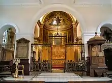 Other alterations have taken place throughout the 20th century. The wrought iron choir screen dates from 1927, when Holy Trinity became pro-cathedral.[2] The organ has undergone substantial movement and alteration over the years, culminating in complete renovations in 1977 and 1997.[9]