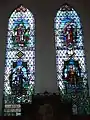 On each side of the east window is a window to the memory of Charles Gane, one of the builders of the church, who died in 1866. That on the left represents the Resurrection, and that on the right the Ascension. The maker is unknown.