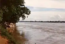 Homalin, a small town, lies close to the Indian border, at the head end of a bend in the Chindwin River, after an island. It has the backdrop of large forested mountains, which rise to a height of 9,000 feet (2,700 m). Some amount of cultivation is also seen on the lower slopes of the hills. Geographical area of the Homalin Township is 2,768,927 acres (1,120,545 ha) including arable land of 18,039 acres (7,300 ha) and forest land of 706,317 acres (285,836 ha).[7] The average elevation of the town is 101 m.[8]