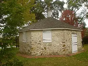 The Hood Octagonal School is a historic octagonal schoolhouse located in Newtown Square, Delaware County, Pennsylvania. It was built in 1841, and is a small, fieldstone, one-story, eight sided building with a wood shingled pyramidal roof. The school was abandoned about 1865, then restored in 1964.[2]