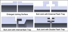 - Butt Joint Flash Trap (External) - This type of joint hides flash on the outside surface and is generally used to reduce noise in surrounding areas.