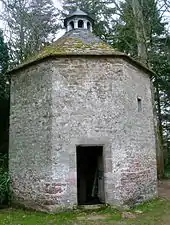 The Walled Garden, built in the 1730s, houses a large collection of herbaceous plants. The terraces were originally laid out in the 17th century. The woodland walk contains a 17th-century dovecote which unusually still contains the potence, an internal rotatable ladder. The 1st Lord Inglewood added a number of new tree species to the grounds and the tree trail guide now lists seventy within the arboretum.[4]