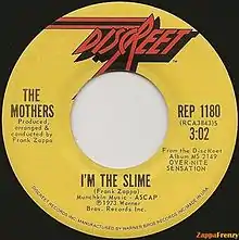 "I'm the Slime" is a 1973 single by Frank Zappa and The Mothers from the album Over-Nite Sensation. Different live versions can be found on Zappa in New York and You Can't Do That on Stage Anymore, Vol. 1, the latter version having been performed and recorded on the same night as the majority of tracks appearing on 1974's Roxy and Elsewhere. "I'm the Slime" and its b-side version of "Montana" were put on Zappa's best of Strictly Commercial. It was performed in concert from 1973 to 1977 and 1984.[1]