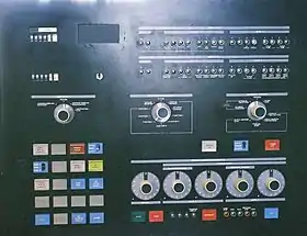 - The hex input switches and the two register-sized displays can be used by the program while the machine is running. This capability derived from the objective of emulating the IBM 2703 which has a fairly rich control panel.