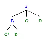 For example, the context free rule , shows that the node labelled A (mother node) immediately dominates nodes labelled B, C, and D, (daughter nodes) and nodes labelled B, C, and D can be immediately dominated by a node labelled A.
