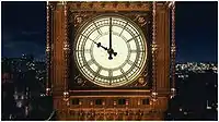 On 22 October 2009, it was jointly announced by ITN and ITV that ITV News would be rebranded from Monday 2 November. At the heart of the revamp was the removal of the famous image of the Big Ben clock tower from the opening sequence of ITV News programmes including News at Ten; ITV executives felt, after "months of deliberation", that the imagery of the landmark promoted London-centricity to viewers outside the capital.[11] A clockface remained as part of the studio backdrop and also appeared within the opening titles, and the headline bongs were also retained. The November revamp included a newly designed rectangular set and graphics featuring a colour scheme of black and gold to complement the ITV1 image and branding. A newly composed piece music called 'News Centre' was introduced, which incorporated only a few elements of 'The Awakening', the previous ITV News theme.[12] The ITV News revamp was developed by ITN, ITV and design agency Bruce Dunlop Associates. ITV-plc regional news programmes continued to use their studio sets introduced in 2004, but with an updated colourscheme and news titles reflecting the ITV News rebrand.