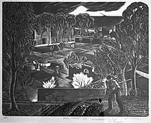 His concepts of the sense of motion which could be created by the shape of repetitive parallel lines were of profound influence, in particular in relation to the art of linocut – an art form which both he and Claude Flight pioneered at the Grosvenor School of Modern Art where with the teachers included Cyril Power and Sybil Andrews.[3]