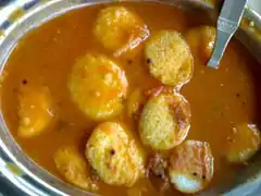 A precursor of the modern idli is mentioned in several ancient Indian works. Vaddaradhane, a 920 CE Kannada language work by Shivakotiacharya mentions "iddalige", prepared only from a black gram batter.[1] Chavundaraya II, the author of the earliest available Kannada encyclopedia, Lokopakara (c. 1025 CE), describes the preparation of this food by soaking black gram in buttermilk, ground to a fine paste, and mixed with the clear water of curd and spices.[2] The Western Chalukya king and scholar Someshwara III, reigning in the area now called Karnataka, included an idli recipe in his encyclopedia, Manasollasa (1130 CE). This Sanskrit-language work describes the food as iḍḍarikā. In Karnataka, the Idli in 1235 CE is described as being 'light, like coins of high value', which is not suggestive of a rice base.[3] The food prepared using this recipe is now called uddina idli in Karnataka.