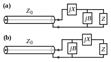 The analysis is as follows.[4] Consider a real source impedance of and real load impedance of . If a reactance is in parallel with the source impedance, the combined impedance can be written as:
