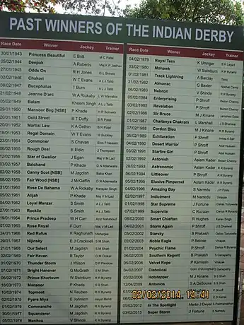 - "Indian Derby Winners". www.tbheritage.com. Retrieved 24 May 2018.