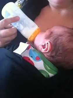 - Personal preferences, beliefs, and experiences: The mother may dislike breast-feeding or think it is inconvenient.[28] In addition, breastfeeding can be difficult for victims of rape or sexual abuse; for example, it may be a trigger for posttraumatic stress disorder.[29][30] Many families bottle feed to increase the father's role in parenting his child.[31]
