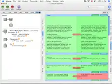 The IDE presents two side-by-side panes for working in. Each pane can contain the source code being worked on, the current status of compilation, the skein, the transcript, the indices of the source code, a running version of the game, documentation for Inform 7 or any installed extensions to it, or settings. The concept is to imitate an author's manuscript book by presenting two "facing pages" instead of a multitude of separate windows.[10]