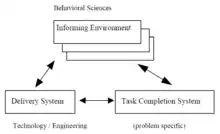 The basic unit of analysis for informing science is the informing system. According to the original Cohen (1999) article, such systems consist of three components: an informing environment, a delivery system and a task completion system, as shown in Figure 1: