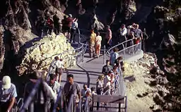 Inspiration Point is a promontory cliff[2] on the north rim of the Grand Canyon of the Yellowstone east of Yellowstone Falls on the Yellowstone River in Yellowstone National Park. The point was originally named Promontory Point in 1878 by W. H. Holmes but later given the name of Inspiration Point by G.L. Henderson, a park concessionaire in 1887.[3] The point is a natural observation point over the rim of the Grand Canyon of the Yellowstone.[4]
