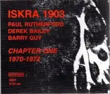 Iskra 1903 is an album by trombonist Paul Rutherford, guitarist Derek Bailey and bassist Barry Guy which was recorded at the Institute of Contemporary Arts in 1970 and in a studio in 1972 and first released as a double album on the Incus label then as a triple CD box set entitled Chapter One 1970-1972 on Emanem in 2000 with additional material.[1][2][3]
