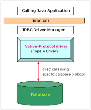 The JDBC type 4 driver, also known as the Direct to Database Pure Java Driver, is a database driver implementation that converts JDBC calls directly into a vendor-specific database protocol.