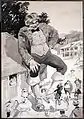 At his peak, Flagg was reported to have been the highest-paid magazine illustrator in America.[9] He worked for the Saturday Evening Post and Collier's which were two of the most popular U.S. journals.[10] In 1946, Flagg published his autobiography, Roses and Buckshot. Apart from his work as an illustrator, Flagg painted portraits which reveal the influence of John Singer Sargent. Flagg's sitters included Mark Twain and Ethel Barrymore; his portrait of Jack Dempsey now hangs in the Great Hall of the National Portrait Gallery. In 1948, he appeared in a Pabst Blue Ribbon magazine ad which featured the illustrator working at an easel in his New York studio with a young lady standing at his side and a tray with an open bottle of Pabst and two filled glasses sat before them.[11]