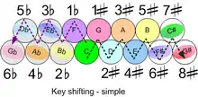 | Easy to play from a musical score | Playing in a different key is a simple matter of shifting the hand, as shown right. |