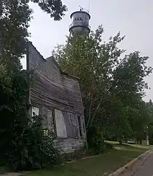 From 1908-1909, the railroad company rerouted its track, passing north of the town by one-half mile. The citizens received a proposal from railroad officials to move the town north, however, this proposal was refused, and the town was served thereafter by a spur line constructed by the company.[8]