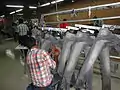 Applying permanent wrinkles to jeans.