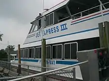 Jet Express is a high-speed ferry service departing from mainland ports in Port Clinton and Sandusky, Ohio. It offers service between Port Clinton, Sandusky, Put-In-Bay, Kelleys Island, and Cedar Point. It is one of the fastest ferries on Lake Erie, taking as little as 20 minutes to travel the 12 miles between Port Clinton and Put-in-Bay.{1}