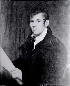 John Jr.'s formal education encompassed only primary school, where he learned to respect the ideas and ideals of the Enlightenment.[4] As a young man, Randel would be deeply committed to reason, but was also a religious man, disagreeing, for instance with Thomas Paine's views about religion expressed in The Age of Reason. Raised in a very tight-knit Presbyterian community, Randel attended church regularly, and strictly held the Sabbath as a day of rest; one of his workers later complained that they were unable to keep up with their correspondence because Randel would not let him write letters on Sundays. While working in Manhattan, Randel sometimes crossed the Hudson River by ferry to attend the First Presbyterian Church in Orange, New Jersey, where relatives of his mother were elders. It was on these visits that he met the woman who became his first wife, his cousin, Matilda Harrison, whom he married in 1813.[5]