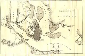 In February, Clinton landed near Charleston with 5,000 troops. By May he had 9,000 troops to less than 2,500 Americans in the area. The siege of Charleston ensued. On May 10, Charleston surrendered.[20] Rutledge had left the city. He remained Governor of the unconquered part of South Carolina.[21]
