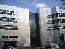 In 2005 he began work on a major refurbishment and reorganisation of Cardiff's Sherman Theatre. The building re-opened in February 2012.[9] Its facade used a distinctive metal cladding and the new entrance was relocated under a dramatic "eyelid".[10]