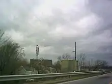 Jordan Point today seen from the approach to the Benjamin Harrison Memorial Bridge; visible are the skeleton lighthouse tower and keeper's dwelling of the former Jordan Point Lighthouse.