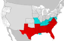 President Abraham Lincoln's Emancipation Proclamation had officially outlawed slavery in Texas and the other states in rebellion against the Union almost two and a half years earlier. Enforcement of the Proclamation generally relied on the advance of Union troops. Texas being the most remote of the slave states had a low presence of Union troops as the American Civil War ended; thus enforcement there had been slow and inconsistent before Granger's announcement.[7] Although Juneteenth generally celebrates the end of slavery in the United States, it was still legal and practiced in two Union border states (Delaware and Kentucky) until later that year when ratification of the Thirteenth Amendment to the Constitution abolished chattel slavery nationwide in December.[8][9][10][lower-alpha 1]