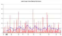 Langer's most notable opening batting partner was Matthew Hayden. The opening pair represented Australia in more than 100 Test innings.[34] The pair made 5654 runs while batting together in partnerships, with an average of 51 runs per partnership; only Gordon Greenidge and Desmond Haynes of the West Indies have scored more Test runs as a partnership, with 6482.[35]