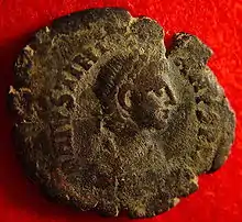 One of the most spectacular features of Justinian's reign was the recovery of large stretches of land around the Western Mediterranean basin that had slipped out of Imperial control in the 5th century.[43] As a Christian Roman emperor, Justinian considered it his divine duty to restore the Roman Empire to its ancient boundaries. Although he never personally took part in military campaigns, he boasted of his successes in the prefaces to his laws and had them commemorated in art.[44] The re-conquests were in large part carried out by his general Belisarius.[45]