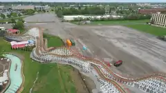 Construction on Kentucky Flyer began soon after, but was quickly halted in mid-October by the park's landlord, the Kentucky State Fair Board, who stopped the park from preceding with any kind of work and payments done on the ride, placing the ride's future in jeopardy. In an October 16 press conference on the construction site, park CEO Ed Hart claimed that the Fair Board was withholding access in an attempt to strong-arm the park into dropping a lawsuit over breaking a paid parking lease, instead giving rented spots out to Kentucky State Fair vendors.[5][6] The following day, after Governor Matt Bevin and his administration became involved, the Fair Board changed course and once again granted permission for the park to continue onwards, securing Kentucky Flyer's future.[7]