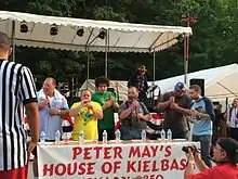 In the United States, kielbasa which may also be referred to as Polish sausage in some areas, is widely available in grocery stores and speciality import markets. While the smoked variety is more commonly found, the uncured variety is often available, particularly in areas with large Polish populations. Several sandwiches featuring the sausage as a main ingredient have become iconic in local cuisines including Chicago's Maxwell Street Polish,[11] Cleveland's Polish Boy,[12] and several offerings from Primanti Brothers in Pittsburgh.[13]