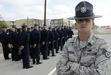 ![]() Military Training Instructors and trainees participating in the Basic Military Training graduation parade. | |||||||