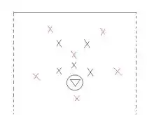 The other common way of aligning is in a V. In this case, one attackman is aligned on the crease, and the other two are aligned at top right and top left. The fast break player comes down the middle of the field, and can pass to the left or right. The goal of both fast break offenses is to draw a defensive player, and quickly pass, until a player is uncovered and open for a shot.