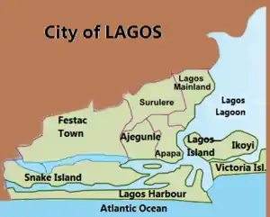![]() Lagos shown within the State of Lagos | |