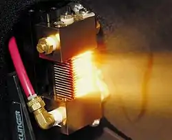 Another method of powering some diode lasers is the use of optical pumping. Optically pumped semiconductor lasers (OPSL) use a III-V semiconductor chip as the gain medium, and another laser (often another diode laser) as the pump source. OPSL offer several advantages over ILDs, particularly in wavelength selection and lack of interference from internal electrode structures.[2][3] A further advantage of OPSLs is invariance of the beam parameters - divergence, shape, and pointing - as pump power (and hence output power) is varied, even over a 10:1 output power ratio.[4]