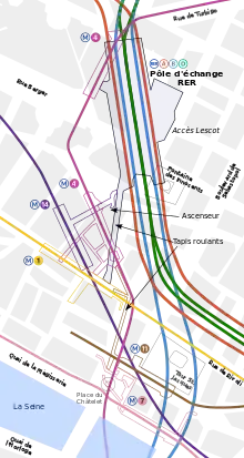 The station redesign includes new entrances on Rue Berger, Rue Rambuteau, and Place Marguerite de Navarre, an expanded RER concourse, and improved pedestrian circulation. Construction began in 2010 on a project which includes the gardens, Forum, and station, and is scheduled to continue through 2016. The clients are the City of Paris, RATP, which operates the Paris Metro, and La Société Civile du Forum des Halles de Paris, which operates the Forum.[9]