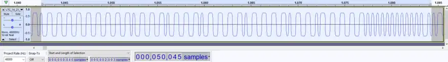 Linear (or Longitudinal) Timecode (LTC) is an encoding of SMPTE timecode data in an audio signal, as defined in SMPTE 12M specification. The audio signal is commonly recorded on a VTR track or other storage media. The bits are encoded using the biphase mark code (also known as FM): a 0 bit has a single transition at the start of the bit period. A 1 bit has two transitions, at the beginning and middle of the period. This encoding is self-clocking. Each frame is terminated by a 'sync word' which has a special predefined sync relationship with any video or film content.