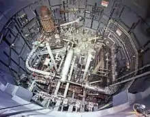 The liquid fluoride thorium reactor (LFTR; often pronounced lifter) is a type of molten salt reactor. LFTRs use the thorium fuel cycle with a fluoride-based, molten, liquid salt for fuel. In a typical design, the liquid is pumped between a critical core and an external heat exchanger where the heat is transferred to a nonradioactive secondary salt. The secondary salt then transfers its heat to a steam turbine or closed-cycle gas turbine.[1]