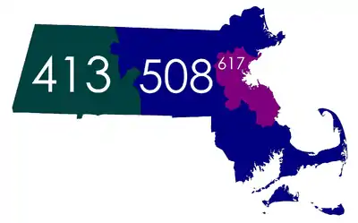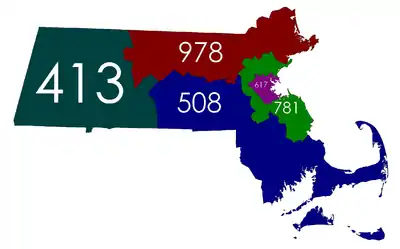 | Wikimedia Commons has media related to Area code maps of Massachusetts. |