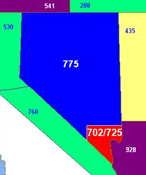 702: The southeastern tip of Nevada, including the Las Vegas metropolitan area